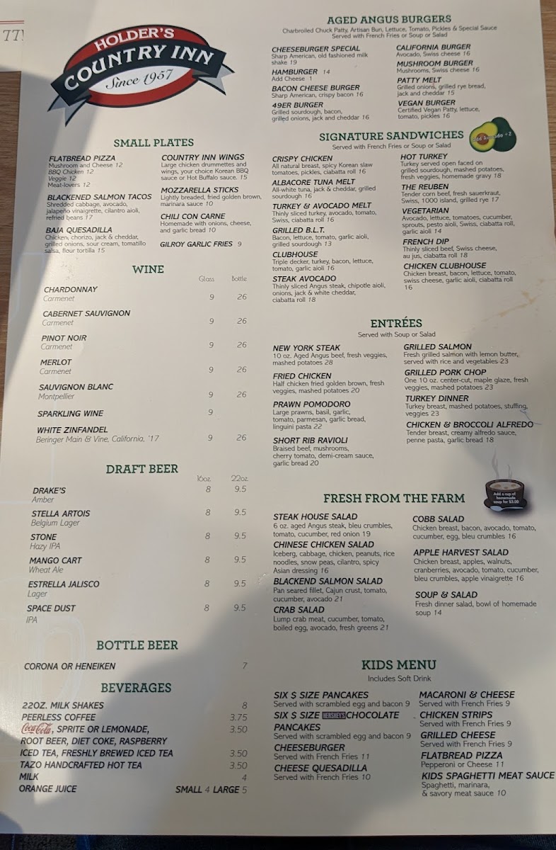 Skillet Sausage, bacon, ham, onions, scrambled eggs, jack and white cheddar, country potatoes, toast or pancakes
