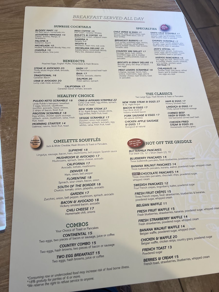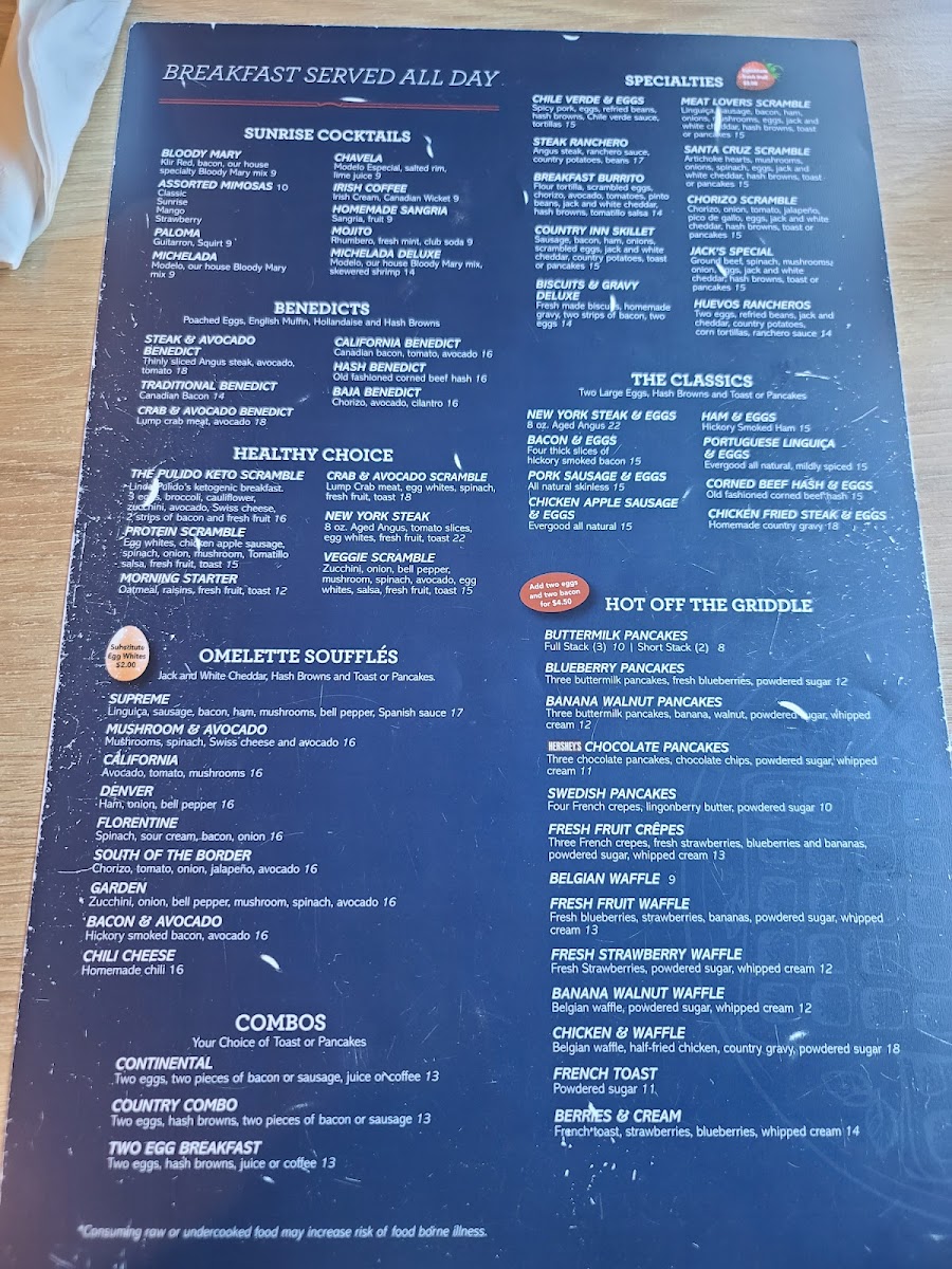 Chorizo, onion, tomato, jalapeño, pico de gallo, eggs, jack and white cheddar, hash browns, toast or pancakes